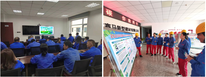 中材甘肃利用电子屏滚动播放、宣传栏张贴、微信群下发主题宣传片、学习习近平总书记关于生态环保重要论述、节能降碳相关知识等。通过开展形式多样的节能宣传活动,倡导广大员工坚持低碳节能的生活习惯,从我们做起,让绿色成为生活的底色,让低碳成为生活的习惯。