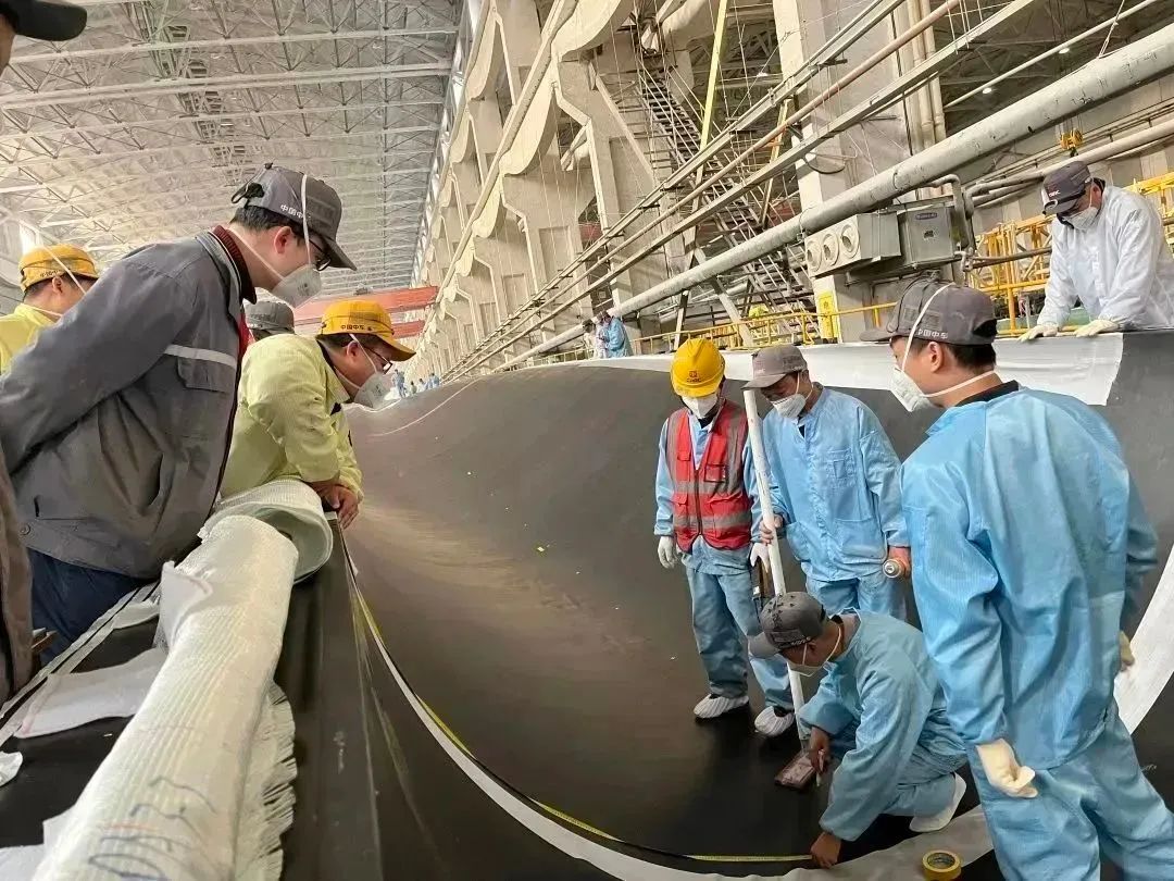 为按时完成安装验收工作,生产制造部紧急调动一部分人员支援,大家通力协作,最终比原计划缩短4天完成模具交付。同时,一体式工装在12h内完成调试,比正常周期缩短一半。这是时代新材风电叶片湘军“能打胜仗”的完美体现。