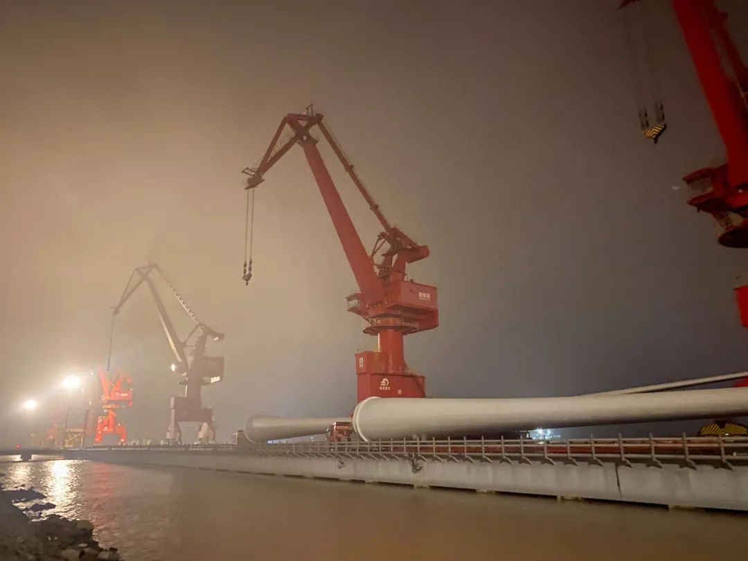 (时代新材111.5米级海上风电叶片在射阳港出海)