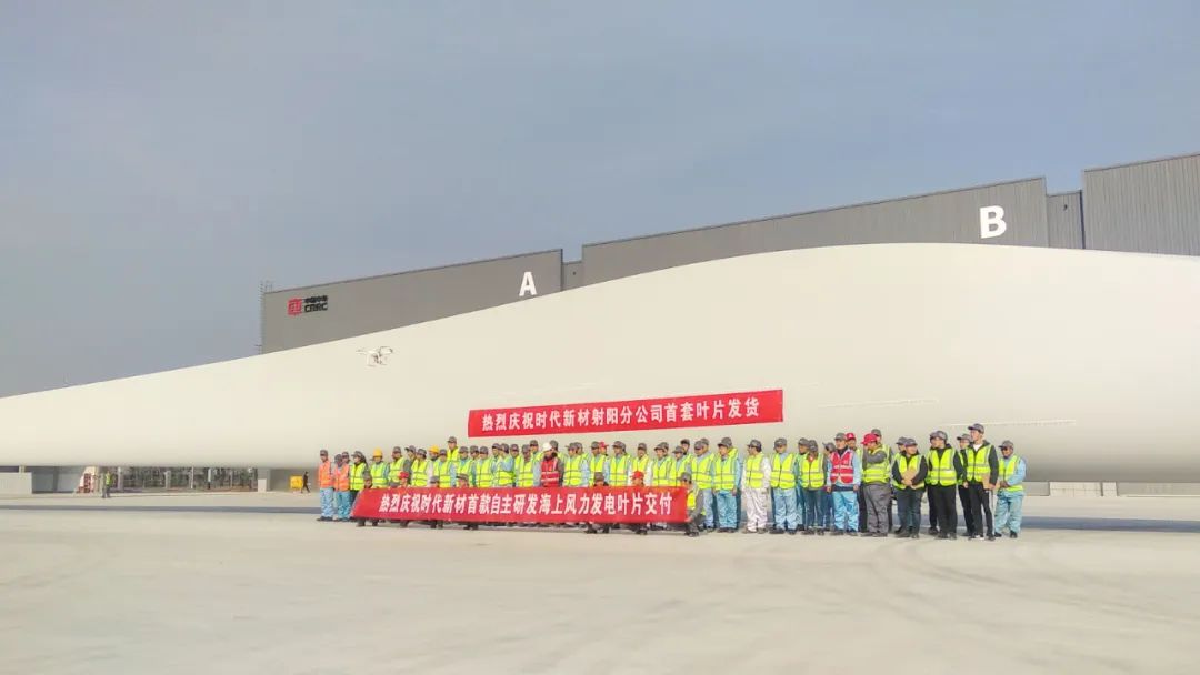 2019年12月19日,时代新材首套自主研发的海上风电叶片TMT5.0MW-72顺利发货,这是射阳分公司建成后生产的首套产品。