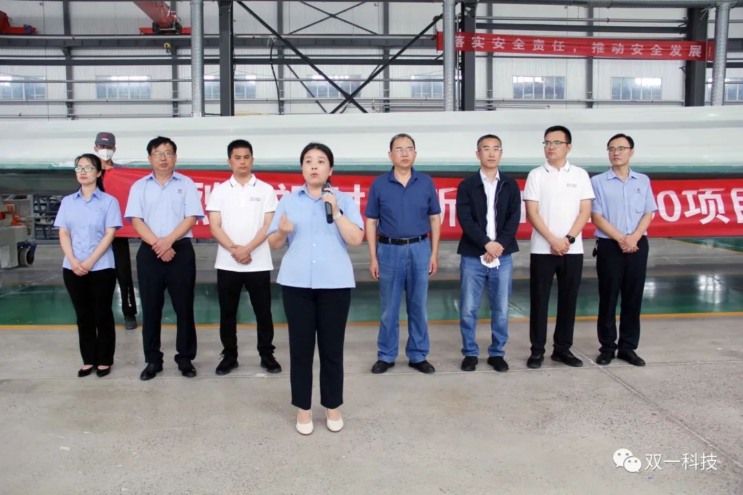 接下来,山东双一科技股份有限公司姚总发表讲话,她首先祝贺时代新材TMT230项目首支叶片顺利下线,并指出该项目是双方合作模式的一次新尝试,充分发挥了双方软硬件综合实力,实现了叶片模具下线到叶片下线的无缝衔接,为项目落地尽快投入市场运营,更好服务于国家双碳政策,提供了新的解决方案,也为双方进一步合作,提供了广阔空间。