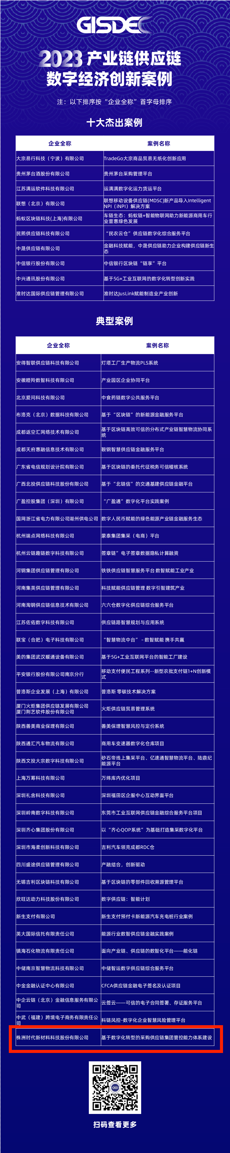 近日,2023年(第五届)产业链供应链数字经济大会在北京召开,会上正式发布了2023年产业链供应链数字经济创新案例,时代新材《基于数字化转型的采购供应链集团管控能力体系建设》案例被评选为2023年产业链供应链数字经济创新典型案例。