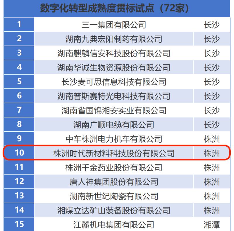 ▲时代新材入选湖南省“数字化转型成熟度贯标试点企业”名单