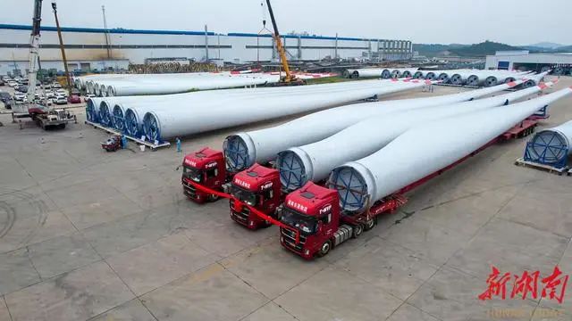 10月18日,三辆装载着97米大型风电叶片的货车从株洲动力谷园区缓缓驶出,向广西崇左市天等县风场进发。这是中车时代新材进军风电产业以来的第20000套叶片。
