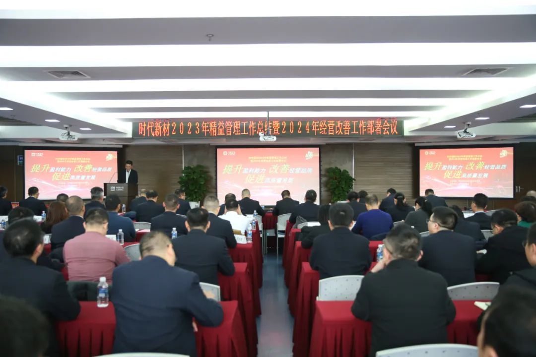 近日,时代新材召开2023年精益管理工作总结暨2024年经营改善工作部署会议。公司党委书记、董事长彭华文,党委副书记、总经理杨治国,在家领导班子、高管出席会议,公司各职能部门负责人,各主体单位经营班子、相关部门负责人及产品线经理、经营改善项目负责人共140余人参加会议。