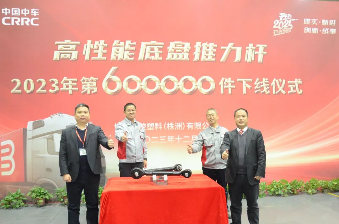 2023年12月25日,时代新材年度第60万件高性能底盘推力杆下线。2023年,时代新材博戈株洲工厂推力杆产品年产量突破60万件,较上年增长约20%;在竞争激烈的汽车领域,开始突破推力杆轻量化创新。