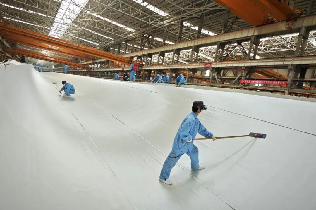 ▲时代新材自主研发的首支海上230BA大功率叶片生产现场