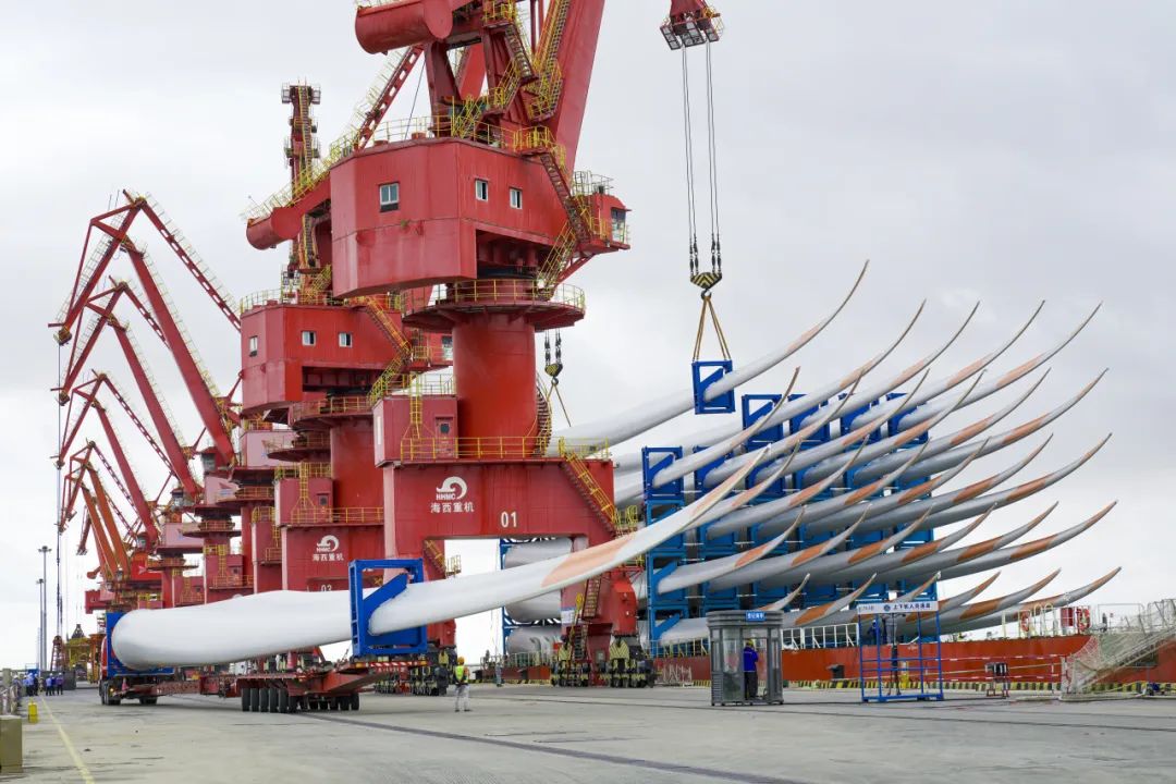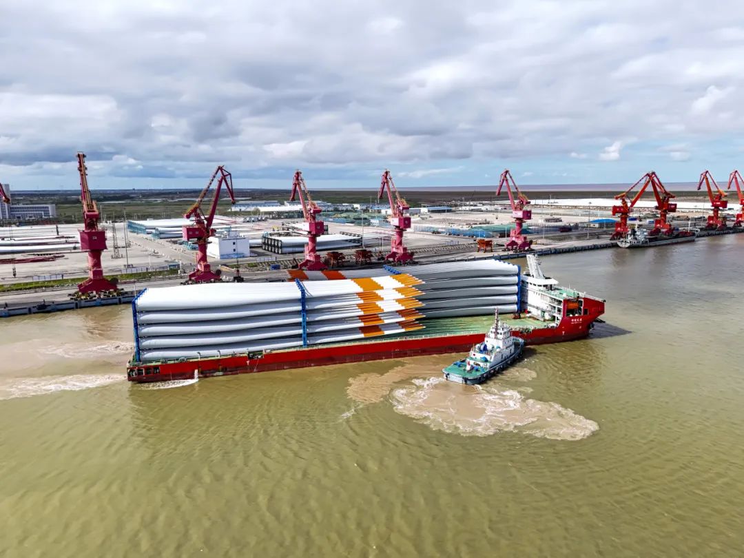 “卡扣到位,全部装载完毕,准备起航。”近日,载运时代新材60支风电叶片的货轮在江苏射阳港缓缓启航,踏上了前往印度的壮阔旅程。