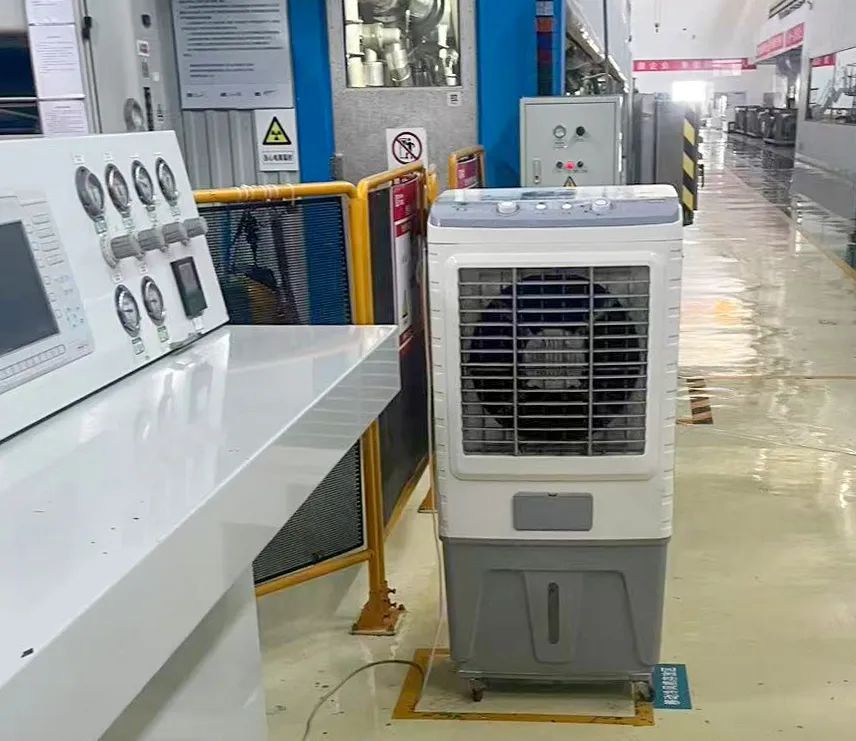 盛夏酷暑,热浪来袭。时代华先在生产现场放置移动冷风机,并为一线员工配备防暑饮品,多措并举保障员工健康安全。