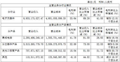 (2)2021年,士兰微子公司士兰集昕8英寸芯片生产线基本保持满产,并不断优化产品结构,产品综合毛利率提高至20.70%,实现全年盈利;士兰微子公司士兰明芯LED芯片生产线实现满产、高产,产品综合毛利率提高至16.88%,实现全年盈利。