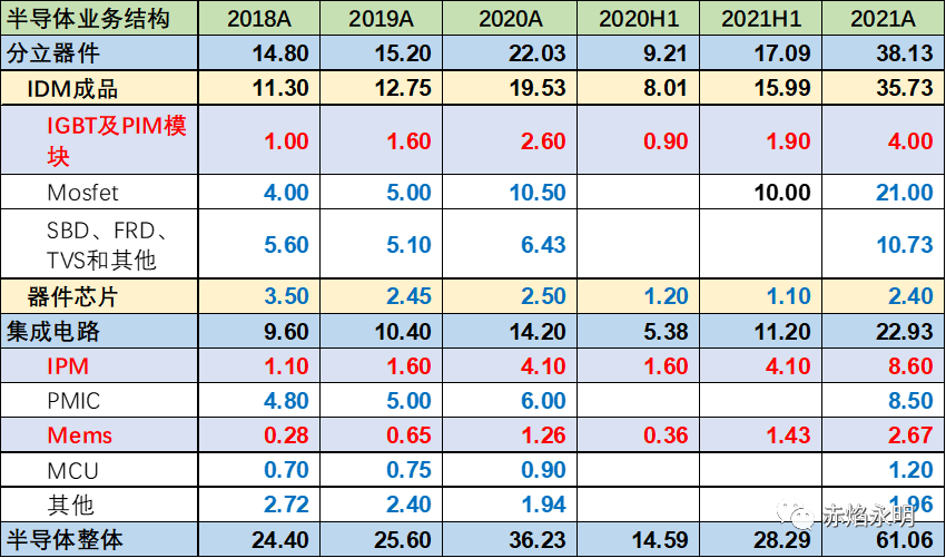 1)Mos、IPM和Mems是收入增长的核心动力,增速均超过100%,是去年业绩出现质变的根本原因。