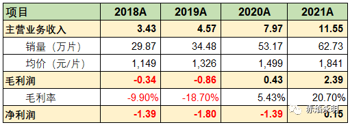 4)士兰集昕(8寸线)扭亏为盈,2021年净利润约1500万。8寸线一直在做产品结构改善,增加IGBT、IPM的投片,销售单价提高到1800元左右,相应的毛利率提高到20.7%。