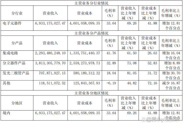 分立器件产品一块占比总营收的55%,毛利率为32.89%,这一块产品的毛利率相对于集成电路而言,毛利率偏低,还需继续改善。