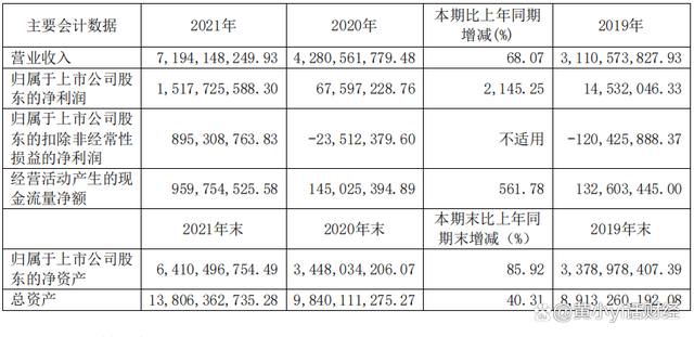 2020年营业收入同比增长了37.61%,2021年营业收入同比增长来68.07%,从营业收入这项指标来看是在高速增长的,并且增速呈现了涨幅扩大的态势。