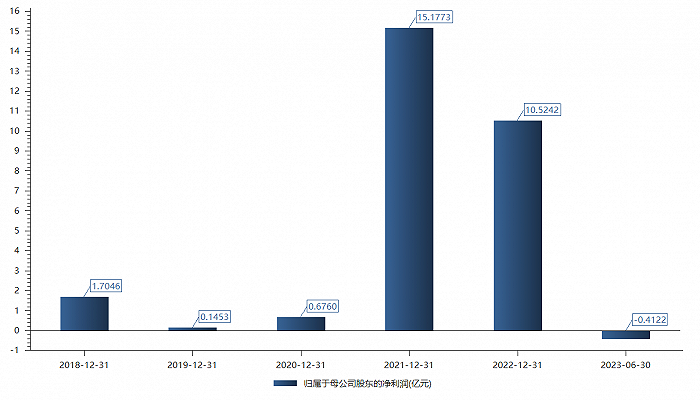 2022年当年归母净利达10.54亿元,同比下滑约30%。2023年上半年业绩转亏。