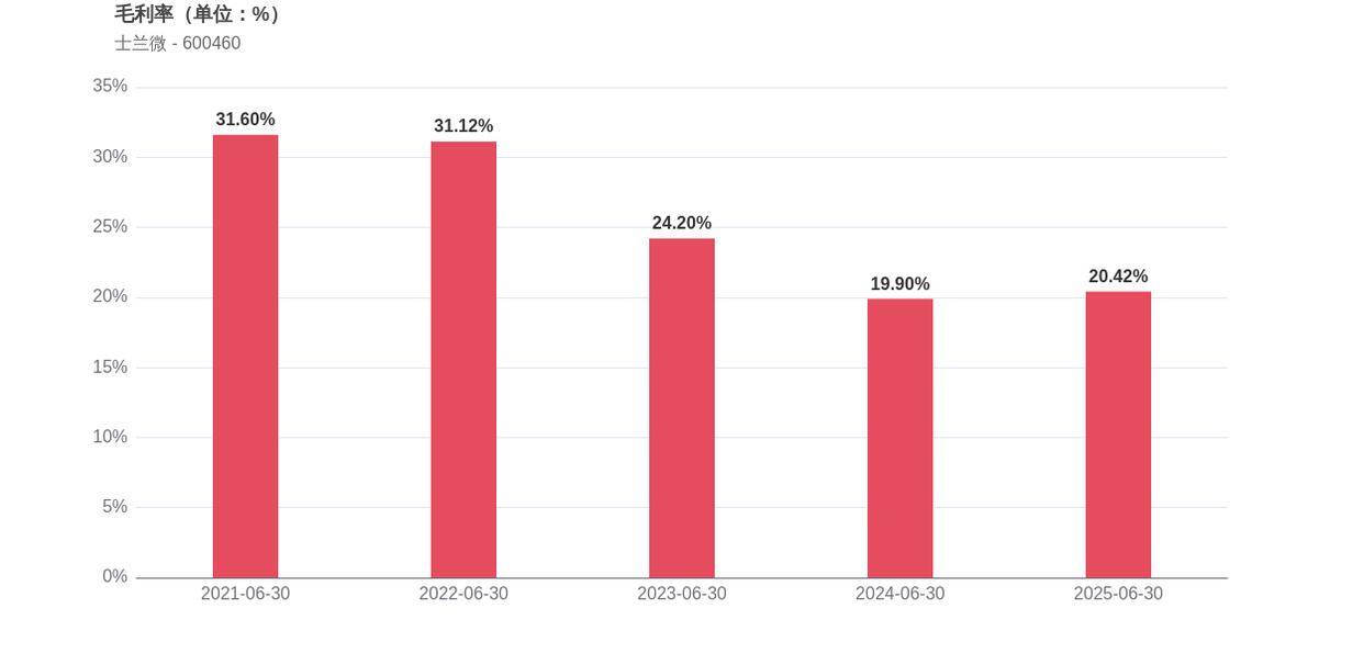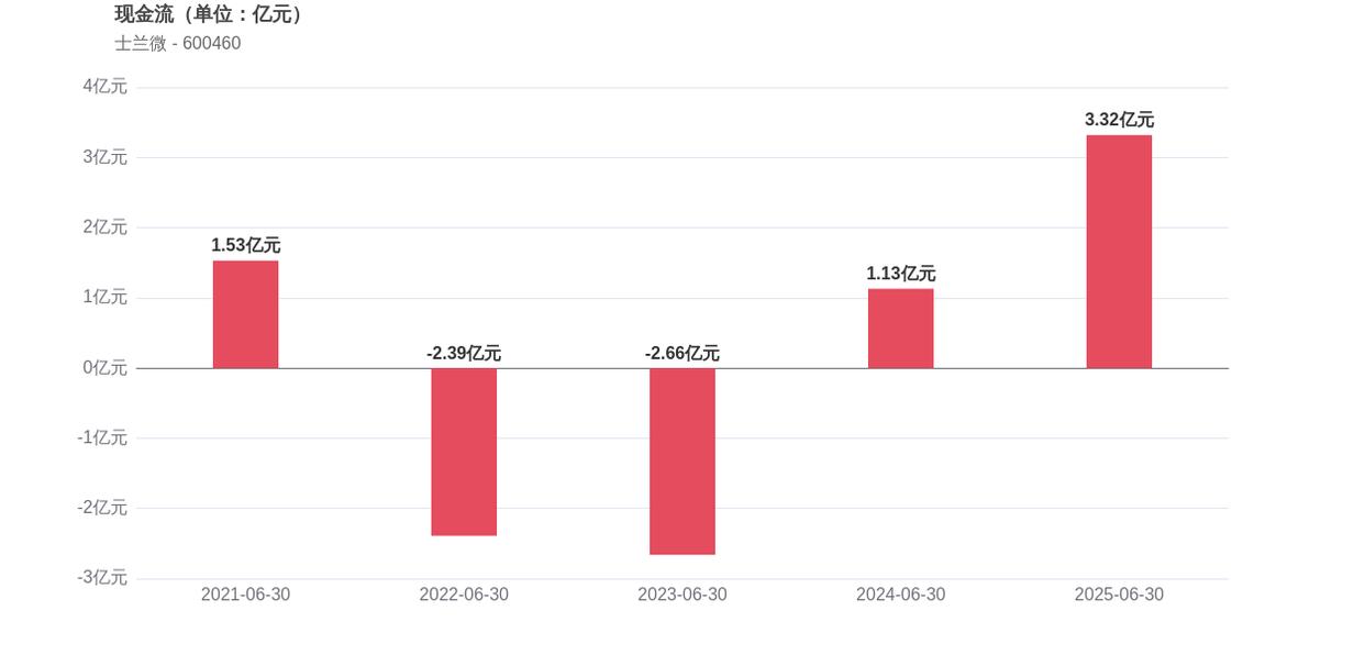 在经营稳健性方面,士兰微面临资产负债率上升的压力,2025年上半年资产负债率为46.43%,同比增长了4.42个百分点,这意味着公司债务负担有所加重。经营活动产生的现金流净额为3.32亿元,相比2024年同期的1.13亿元实现大幅增长。此外,存货周转天数为137.10天,较2024年上半年下降了20.92%,运营效率有所提升。