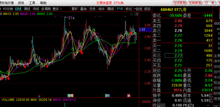 二级市场显示,ST九长期低于20亿元市值。