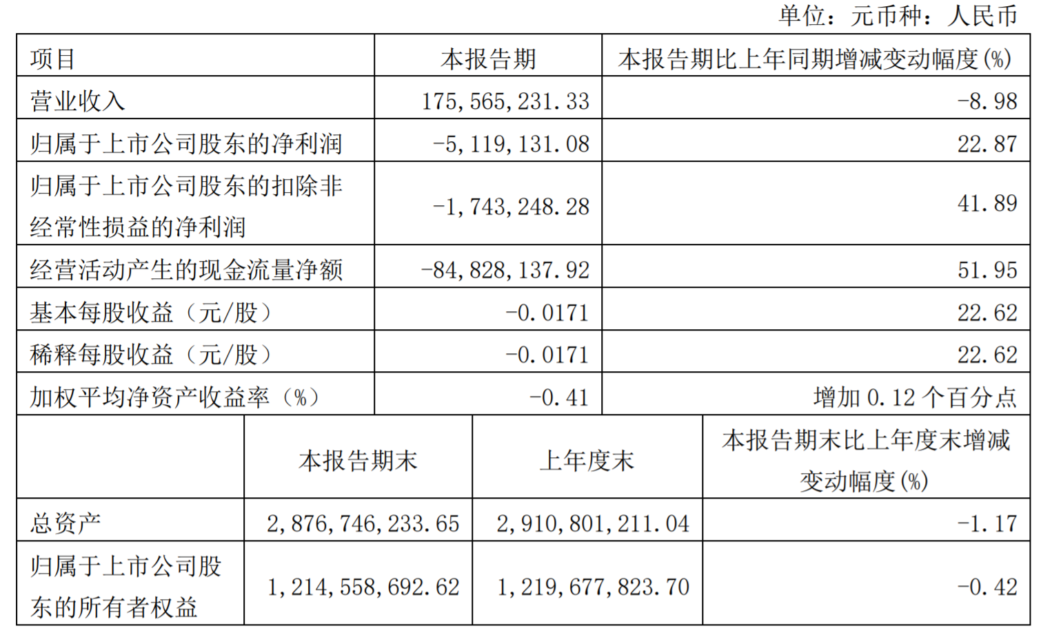 公告显示,空港股份一季度营业收入为1.76亿元,同比下降8.98%;归属于上市公司股东的净利润为-511.91万元,同比上升22.87%。经营活动产生的现金流量净额为-8482.81万元,同比上升51.95%,主要原因是本期购买商品、接受劳务支付的现金同比降低所致。