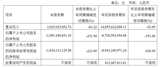 此外,据其10月29日披露的三季报数据显示,第三季度蓝光发展营业收入29.25亿元,同比减少81.22%;归属于上市公司股东的净利润亏损19.83亿元,同比减少251.56%。整体来看,2021年前三季度,蓝光发展实现营业收入同比减少52.65%至148.55亿元;归属于上市公司股东的净利润亏损67.04亿元,同比减少351.06%。