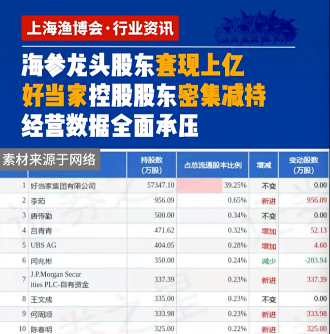 海参巨头急套现!好当家控股股东1个半月狂减1.07亿,行业寒冬下谁能独善其身?