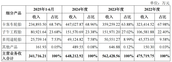 从业务结构来看,卡客车轮胎仍是公司营收主力,报告期内实现收入23.49亿元,占比68.74%;子午工程胎收入8.09亿元,占比23.68%;多用途轮胎收入2.57亿元,占比7.53%。值得注意的是,受原材料成本上升影响,各产品线毛利率均较2024年出现下滑,分别为11.30%、28.09%和4.76%。