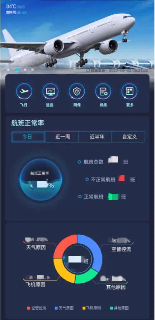 移动端数据看板可以通过为业务人员提供航班正常率、航班载运率等可供分析和整理的数据,帮助其更好地掌握航运动向,提升运输效率。