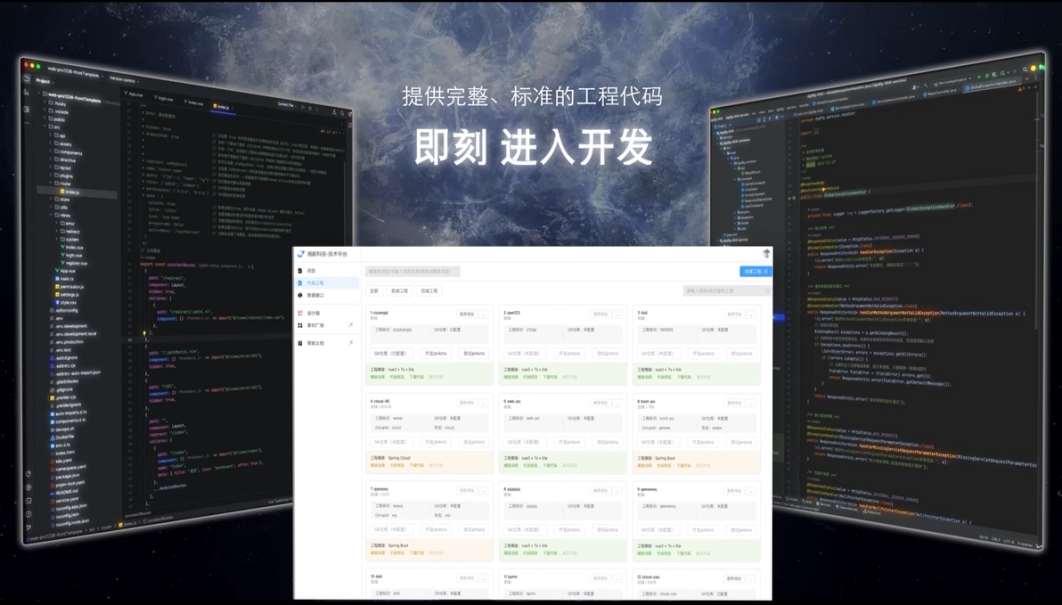 通过技术中台的简单配置,应用项目能够轻松完成技术经理的常规繁琐操作,缓解工期和人员压力。对于表单业务,技术中台支持一键生成全量代码,减少开发工作量;将UI设计快速转化为高可用代码,大幅缩短研发周期。