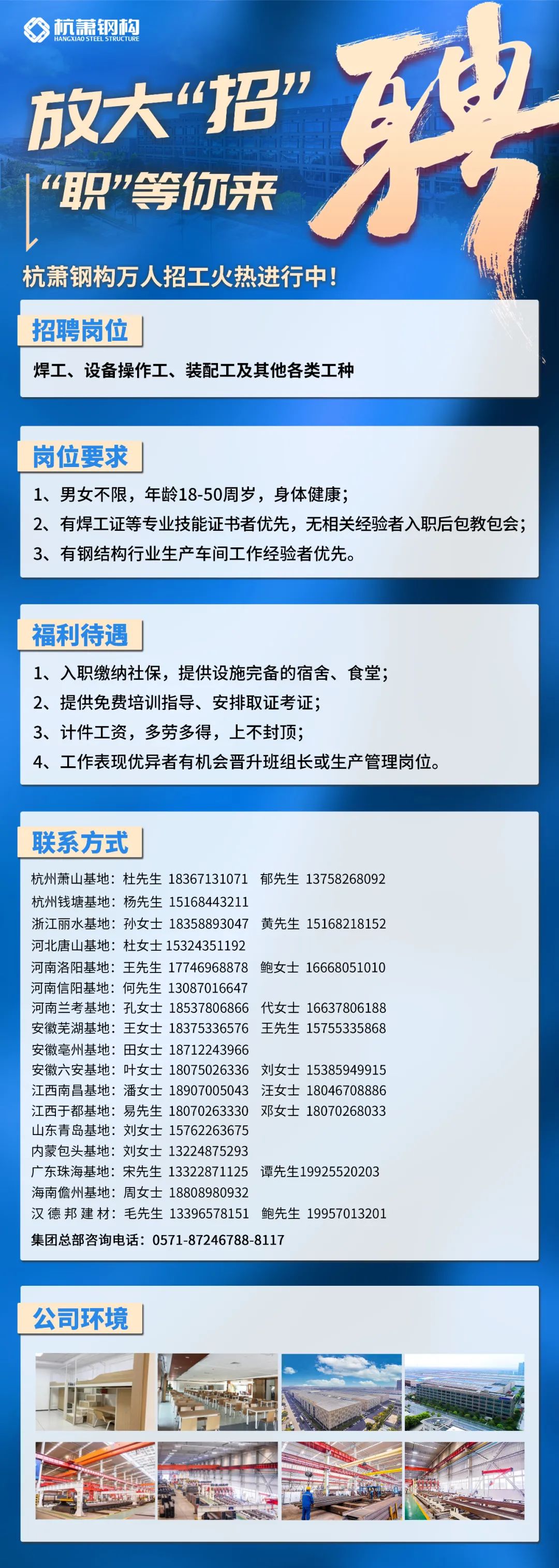 工作地点:河北省唐山市玉田县后湖工业园区杭萧钢构