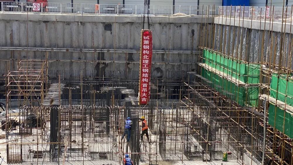 该项目目前完成首根钢柱的吊装,后续施工中。该项目总建筑面积18493.88平方米,其中地上建筑面积约13908.16平方米,地下4585.72平方米,建筑高度23.60米。主体结构均采用钢框架+BRB支撑,基础采用筏板基础。