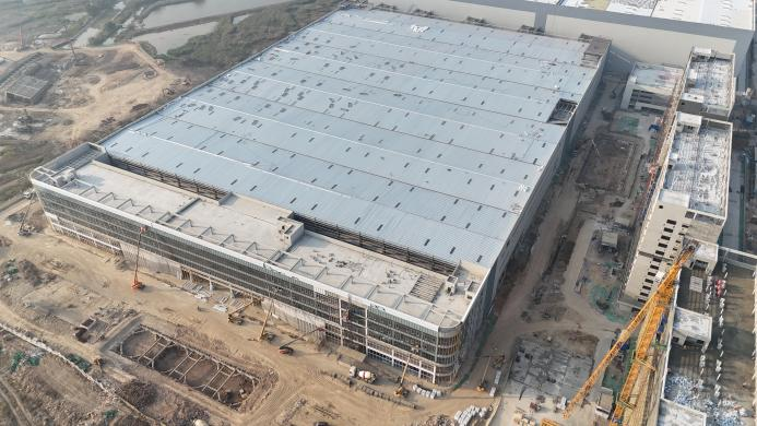 该项目位于广东省珠海市斗门区,建设用地面积约为78329.9平方米,总建筑面积约191958.41平方米,建设内容主要包括A1联合厂房、C1门卫、 A1厂房至A2立体库五个物料连廊(D2~D6)、A1厂房至宿舍楼的室外连廊D7。项目主体结构及屋面已全部完成,目前正在有序推进墙面及防火涂料等各项工程施工。