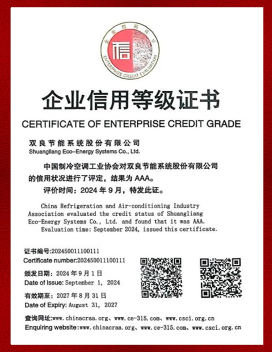 AAA级是中国节能协会信用评价体系中的最高等级,旨在使守信企业充分发挥诚信自律示范带头作用,弘扬诚信经营、有序竞争的行业风气,切实提高节能降碳水平,推动我国节能业高质量发展。此次殊荣,不仅是对双良节能长期以来坚持规范治理、稳健运营、诚信履约的高度肯定,更是对企业信用体系建设成果的权威背书。