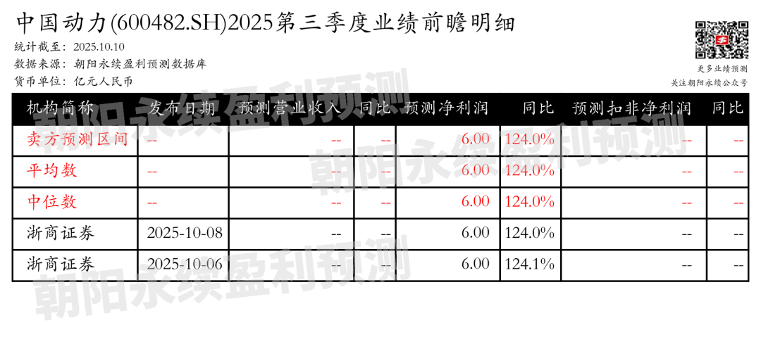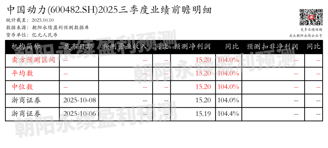 截至2025年10月10日,根据朝阳永续季度业绩前瞻数据: