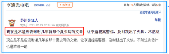 值得一提的是,在股吧发现,有网友直呼应该感谢夏虫作者当时对亨通光电的质疑让其逃过一劫。那究竟是逃过一劫还是另有隐情?