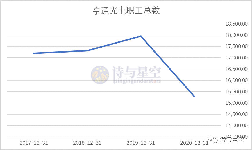 但让星空君百思不解的是,2020年的年报中,亨通光电人数比上年少了2670人,差不多占比15%。