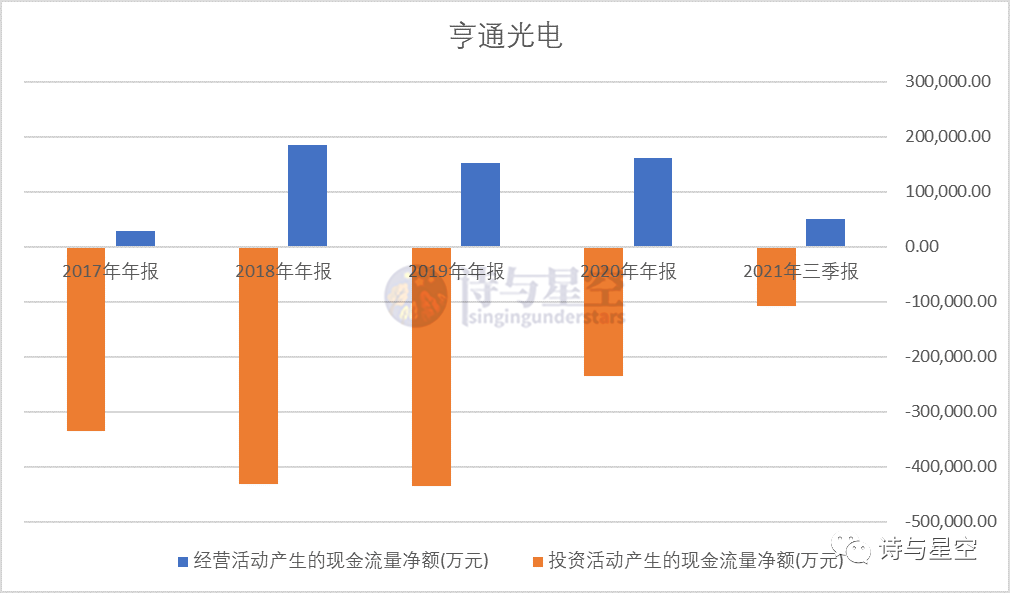 星空君最近在做“自由现金流”的科普,不多介绍了,大家记得橙色柱远比蓝色柱长,就知道公司的资金入不敷出。