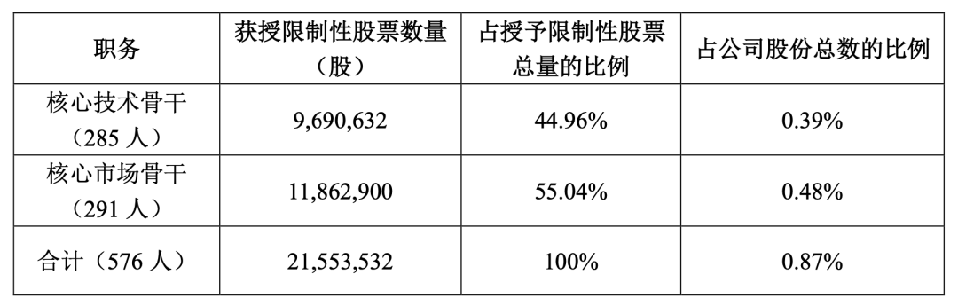 其中,核心技术骨干285人,核心市场骨干291人。本计划限制性股票的授予价格为7.64元/股。