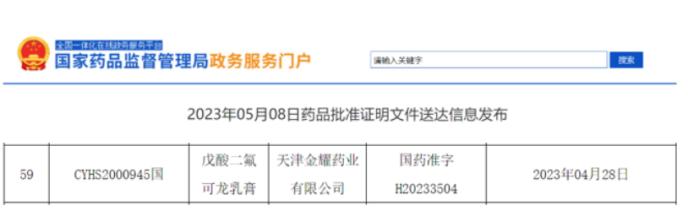 5月9日,津药药业股份有限公司(以下简称“公司”)子公司天津金耀药业有限公司(以下简称“子公司”)收到国家药品监督管理局核准签发的关于戊酸二氟可龙乳膏(以下简称“该药品”或“本品”)的《药品注册证书》。这表明,该产品的安全性、有效性、质量可控性等达到了国家标准,将对公司拓展国内制剂市场、提升公司业绩带来一定的积极影响。