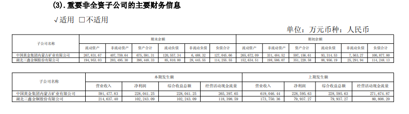 表:中金黄金2024年报披露的重要子公司财务信息