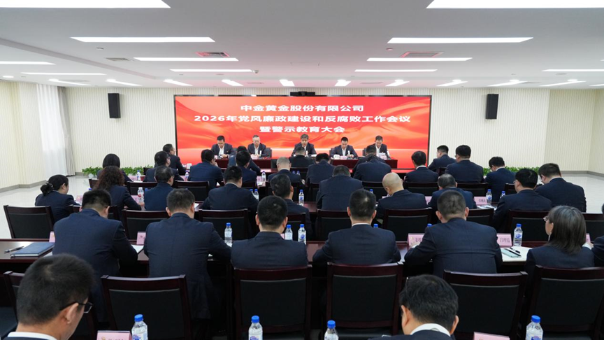 中金黄金党委书记、副董事长、总经理贺小庆出席会议并讲话,党委副书记、工会主席杨晶斌主持会议,党委委员、董事、常务副总经理苏志远传达二十届中央纪委五次全会精神、国务院国资委2026年党风廉政建设和反腐败工作会议精神,党委委员、纪委书记熊壮图通报典型案例、作纪委工作报告,党委委员、总会计师、总法律顾问徐源传达集团公司2026年党风廉政建设和反腐败工作会议暨警示教育大会精神。