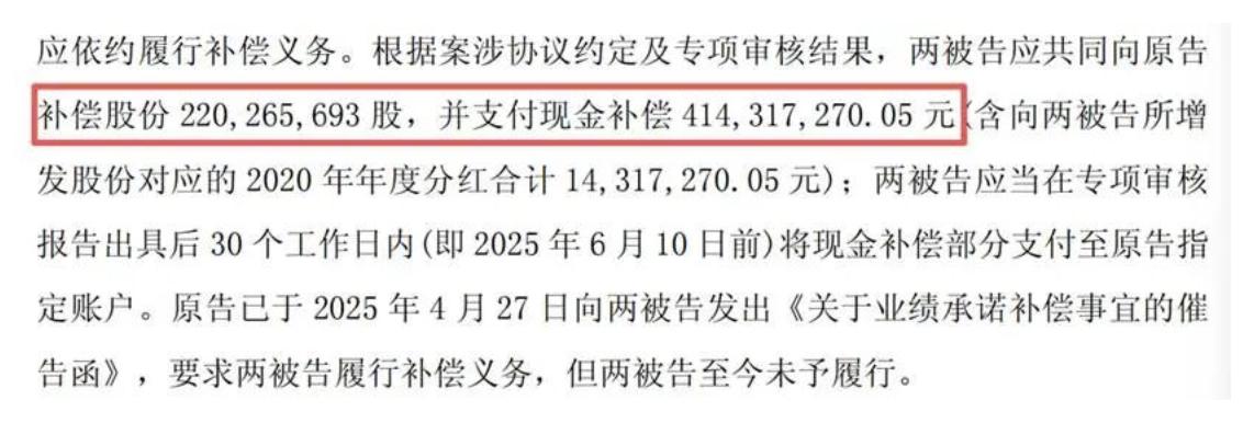 因此,姜照柏、姜雷应共同向鹏欣资源,补偿股份2.2亿股,并支付现金补偿约4.14亿元;他们需要在2025年6月10日前,将现金补偿部分,支付至鹏欣资源指定账户。