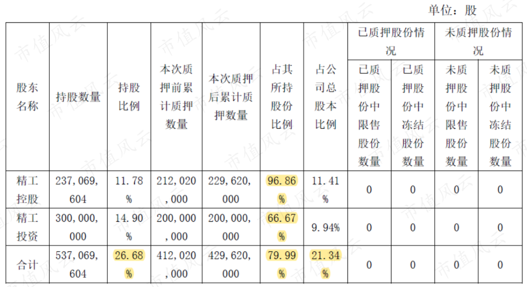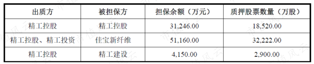 根据天眼查信息,佳宝新纤维是精工控股的全资子公司,所以股票质押的主要用途就是为精工控股提供担保。