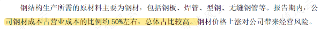 根据公司测算,钢材成本占公司营业成本的比例大约为50%。所以说,价格上涨不仅侵蚀利润率,还将占用更多的资金,从而增加公司的流动资金压力。
