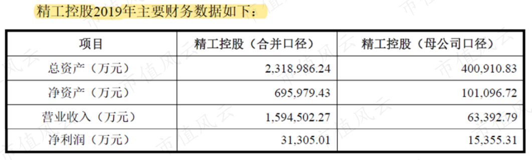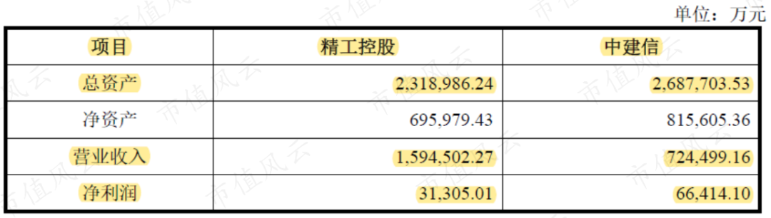 从双方总资产体量来看,显然除了精工控股这部分资产以外,中建信2019年末就剩下不到40亿的资产规模。而由于中建信仅仅并表精工控股2019年9-12月的营收,所以可以估算其原本的营收规模也就小几十亿。