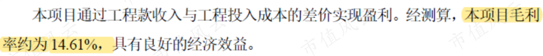 绍兴南部综合交通枢纽建设工程施工总承包项目,测算的毛利率为14.61%。