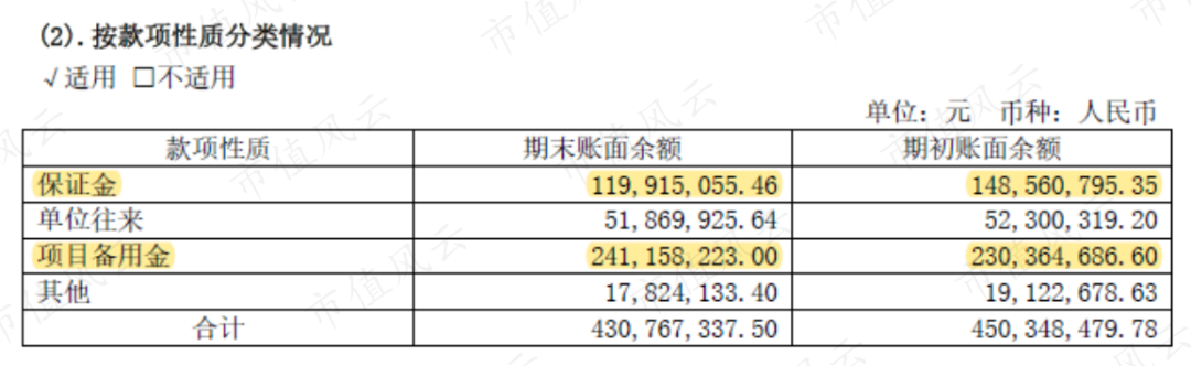截至2020年末,公司其他应收款科目下有1.2亿保证金。