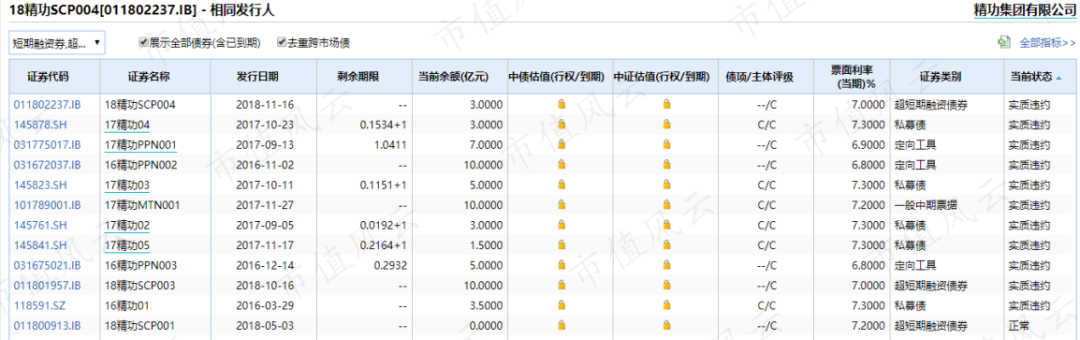 目前,精功集团有多起债券都呈现“实质违约”状态,情况很不乐观。