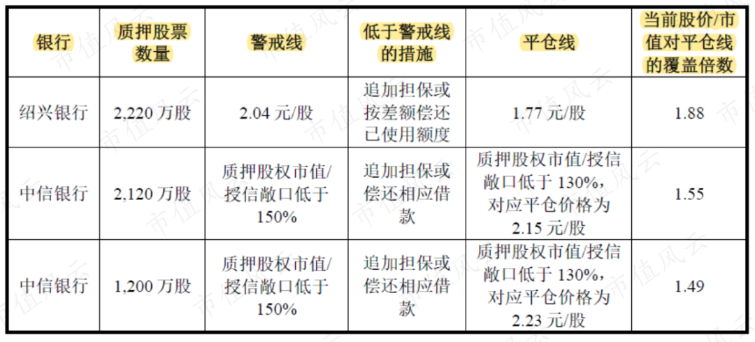 根据公司披露,股权质押总共涉及到8家金融机构,合同有明确平仓线约定的有三家,最高平仓线2.23元。