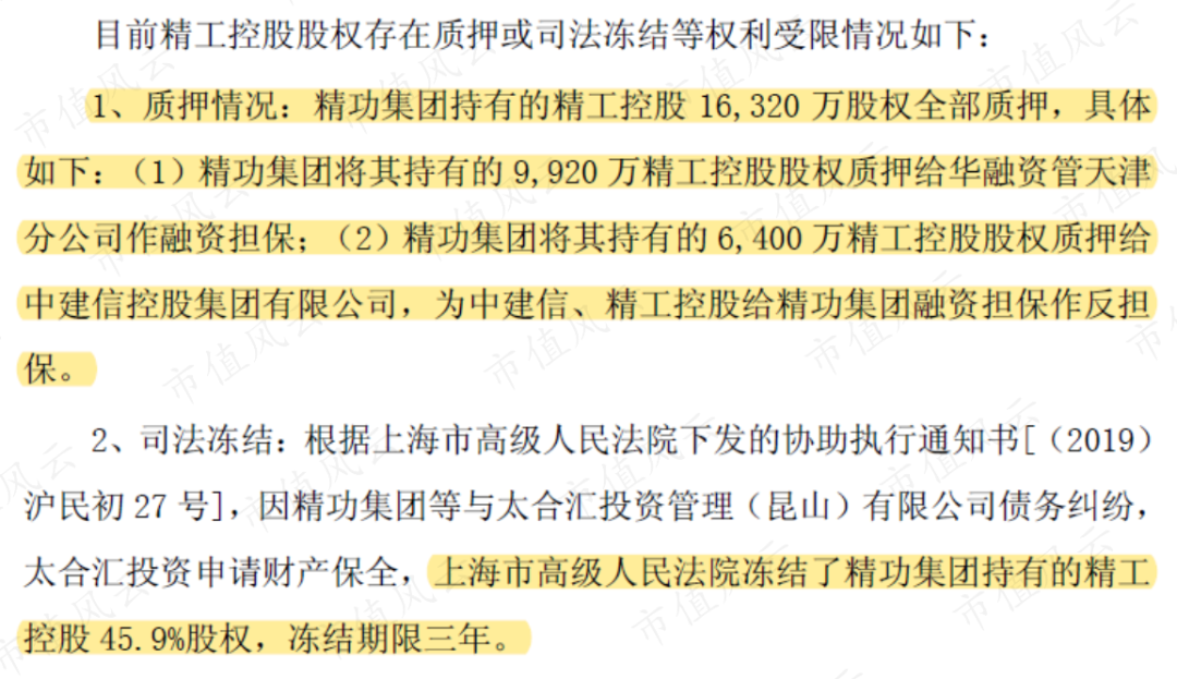 因为在此之前,精功集团就曾因与昆山一家投资管理公司的债务纠纷,直接导致其持有的精工控股,也就是精工钢构的母公司,全部45.9%股权被司法冻结。