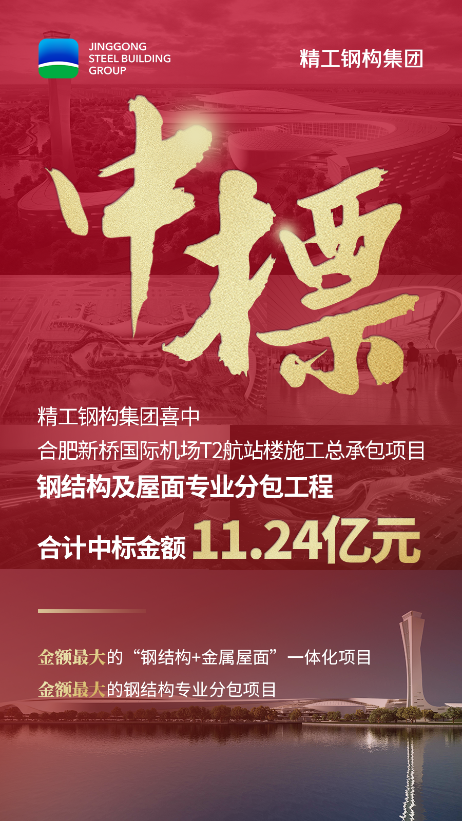 日前,精工钢构集团中标合肥新桥国际机场T2航站楼施工总承包工程项目钢结构及屋面专业分包工程(以下简称“合肥新桥国际机场T2航站楼项目”),合计中标金额达11.24亿元。