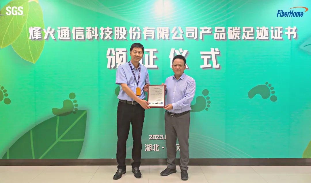 2023年6月14日,国际公认的测试、检验和认证机构SGS为烽火通信科技股份有限公司(以下简称:烽火通信)旗下8款终端产品正式颁发ISO 14067产品碳足迹核查证书,其中包括4款全4K智能机顶盒及4款吉比特无源光网络用户端设备,标志着烽火通信在温室气体排放的量化和管理上迈出坚实一步。